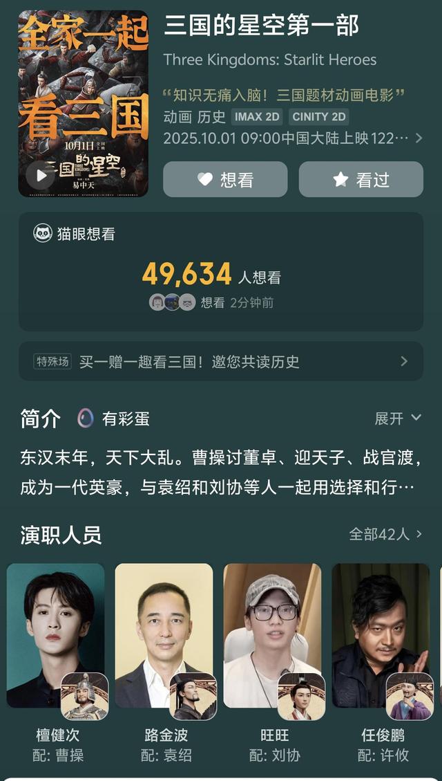 现代快报讯(记者 郑文静)将于10月1日上映的《三国的星空第一部》由易中天担任编剧、监制,于孟、袁原执导,檀健次等配音,作为首部三国题材动画电影河南配资网,以曹操的独特视角重新解读历史,为观众呈现不一样的三国风云。